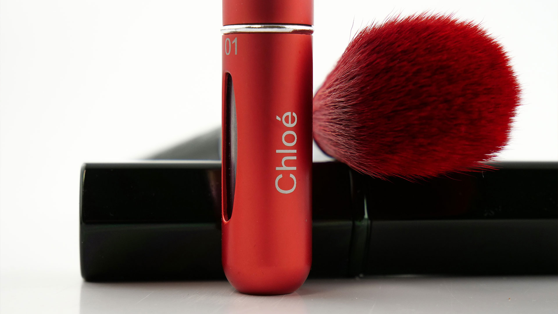 Puedes personalizar frascos de perfume, labiales, estuches de maquillaje, brochas, espejos, y más.