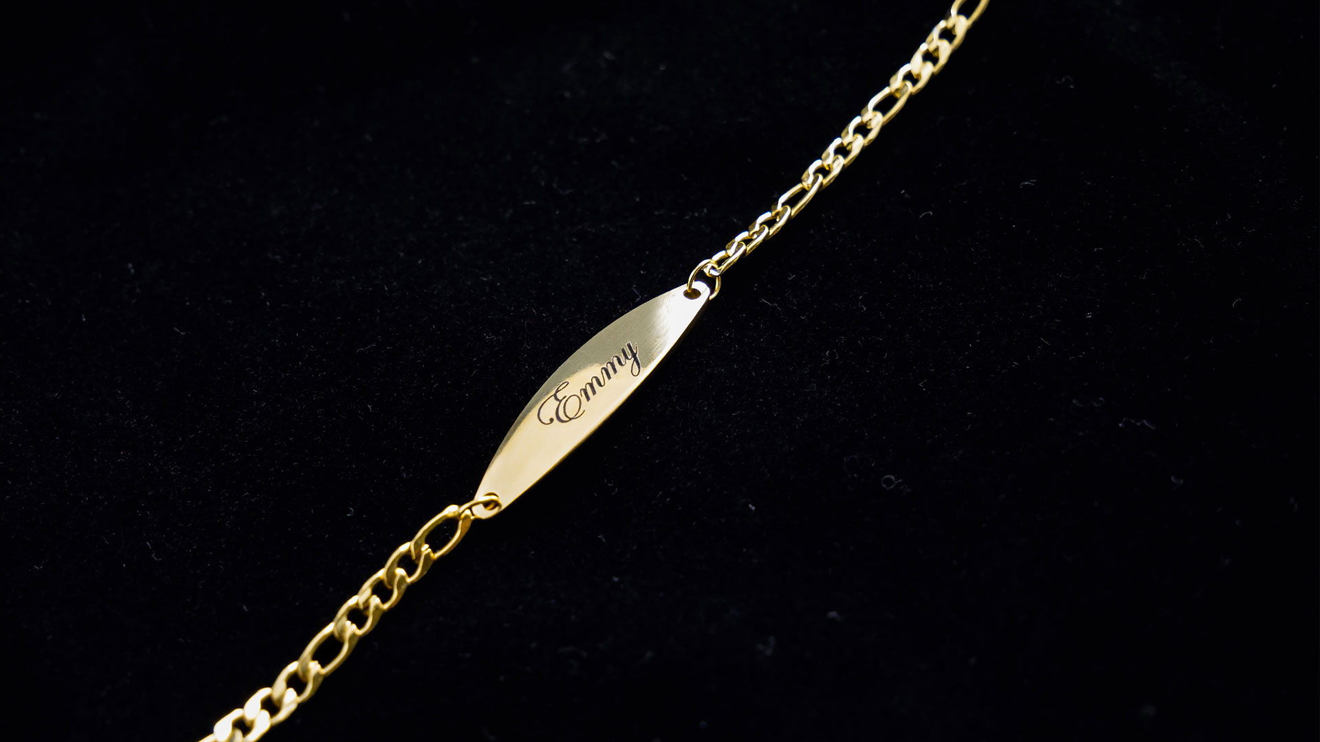Puedes personalizar una amplia gama de joyas y objetos, incluidos anillos, pulseras, collares, relojes, charms, llaveros y adornos personalizados, con grabados que van desde simples textos hasta complejos diseños decorativos.