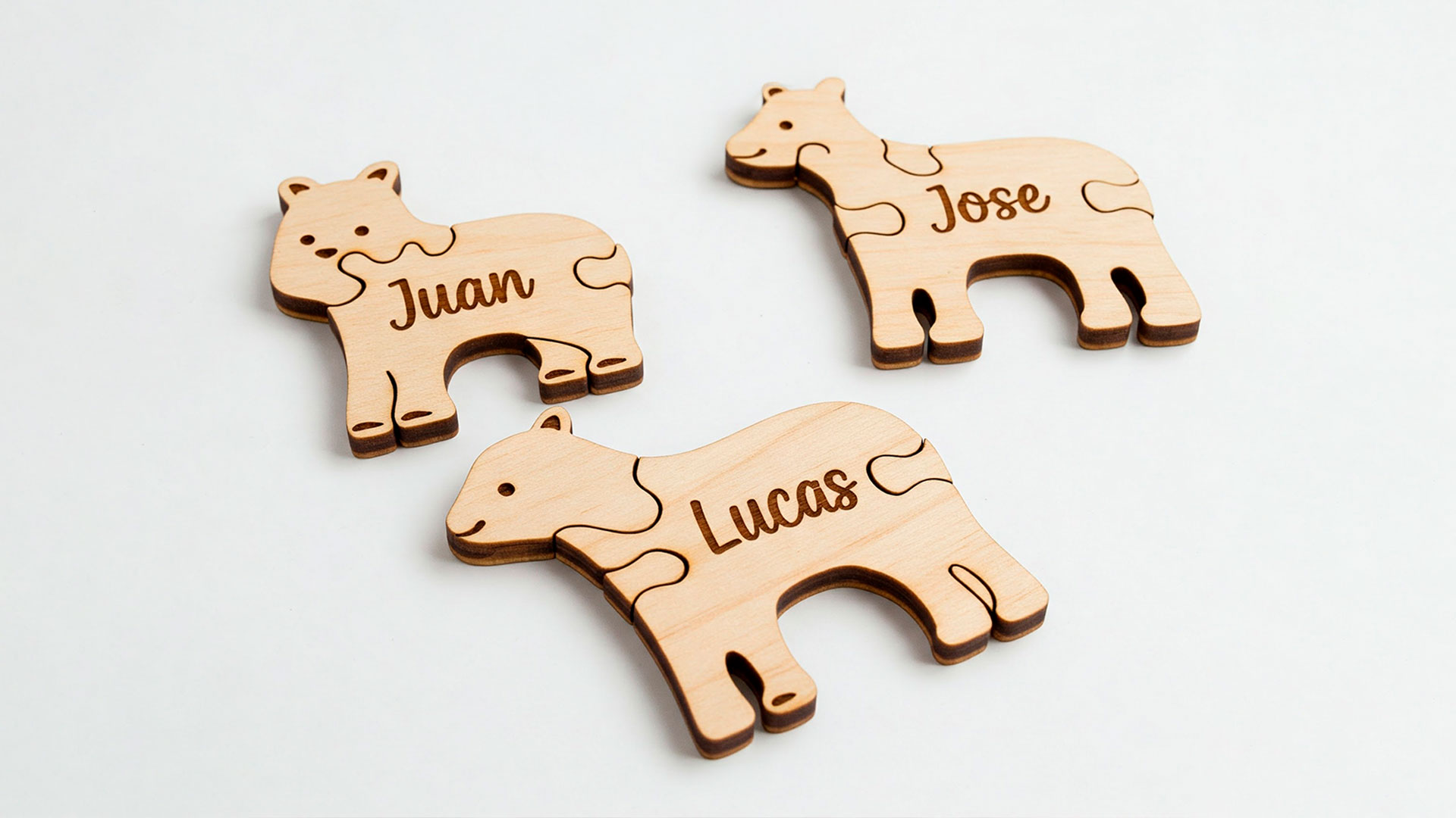 Las máquinas de grabado son increíblemente versátiles, permitiendo trabajar con materiales como madera, acrílico, plástico y metal. Ya sea que se trate de piezas de rompecabezas, juguetes de madera o incluso juegos electrónicos, nuestras soluciones pueden adaptarse a diversas formas y tamaños, asegurando un acabado limpio y profesional en cada pieza.