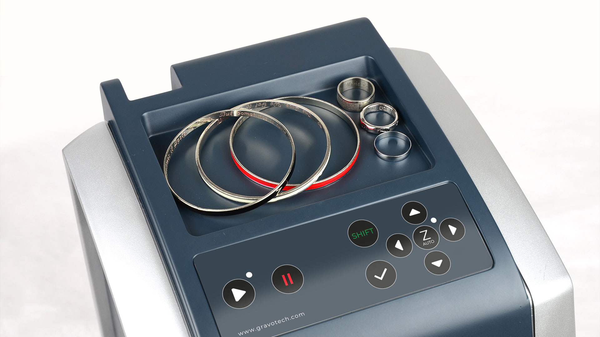 Esta máquina permite grabar una variedad de textos, fuentes, símbolos y logotipos, lo que potencia la creatividad del usuario. Además, el accesorio opcional Dedicace de Gravotech brinda a los clientes la oportunidad de personalizar aún más sus joyas.