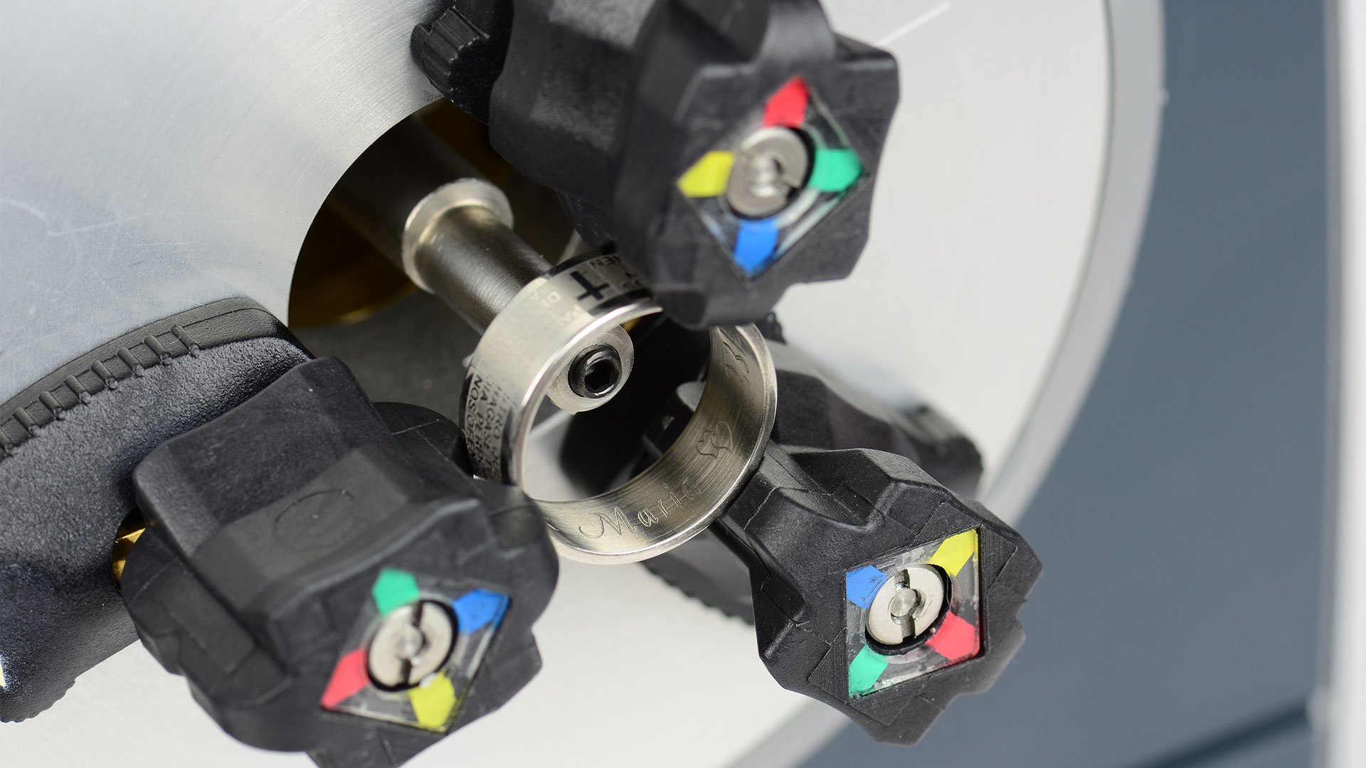 La M10 Joyería está diseñada para grabar anillos y pulseras de diversas formas y tamaños. Con mordazas especiales que pueden sujetar anillos de 12,5 a 25 mm de diámetro y pulseras rígidas de 45 a 80 mm, esta máquina ofrece una gran versatilidad sin necesidad de herramientas adicionales. El software GravoStyle guía al usuario en el proceso, indicando la mordaza más adecuada y el posicionamiento del objeto.