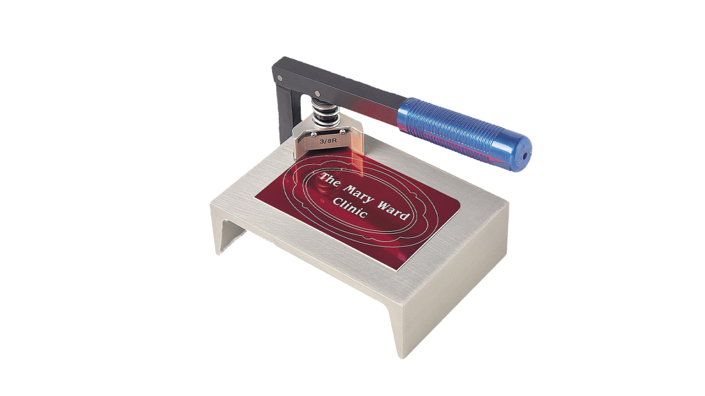 La cizalla troqueladora CSC es una herramienta manual diseñada para troquelar esquinas de placas de forma precisa y profesional. Con 13 modelos de troqueles disponibles, esta máquina permite realizar diversas formas en una amplia variedad de materiales, incluyendo plásticos (ABS, PVO, PS), aluminio y latón. Suministrada con un troquel de corte de radio de 6,3 mm, la CSC es ideal para personalizar y dar un acabado perfecto a tus trabajos.