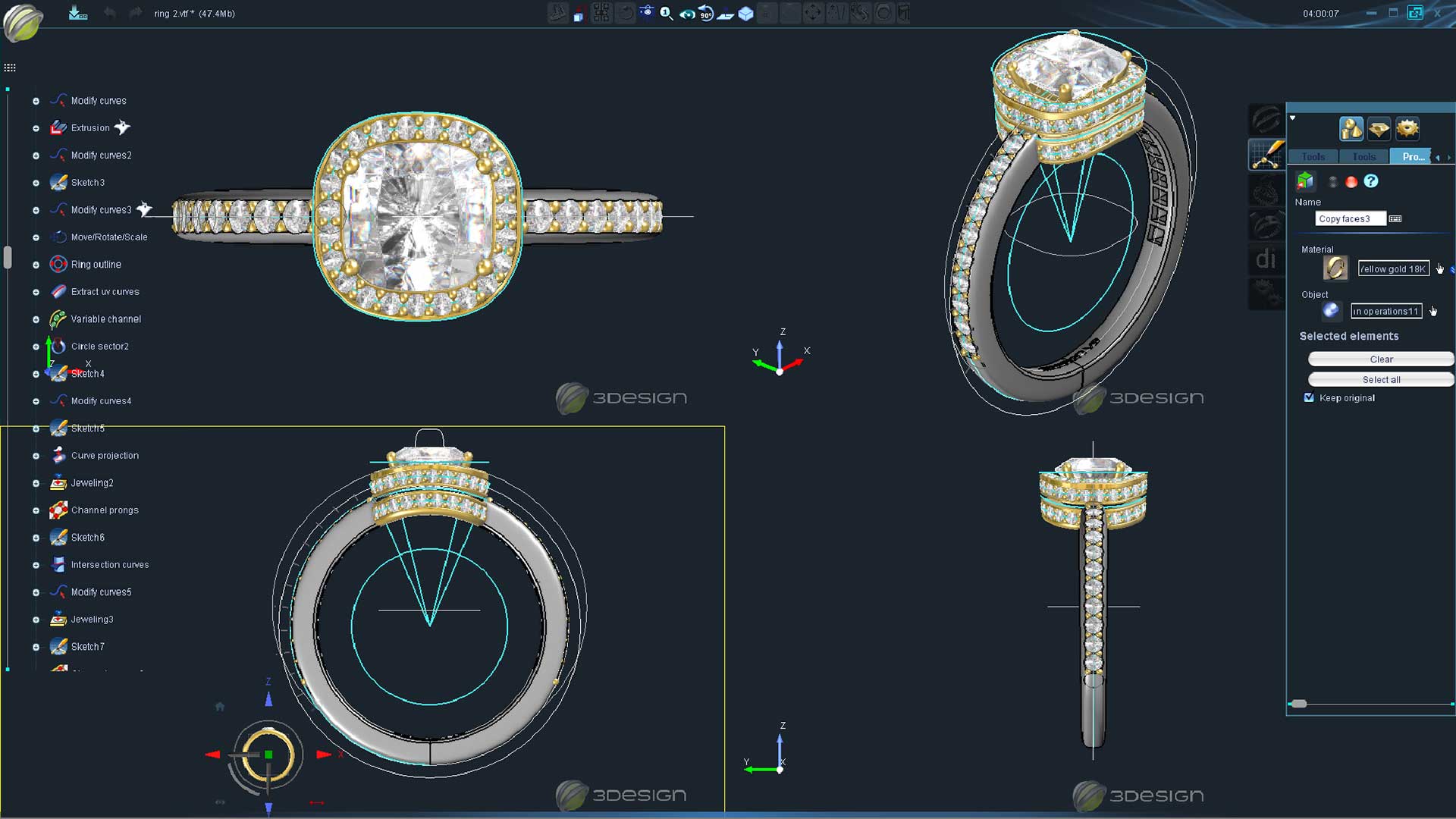 3Design es un software de vanguardia para el diseño de joyas que te mantendrá a la delantera en el competitivo mundo de la joyería. Su tecnología avanzada y su interfaz intuitiva permiten a los diseñadores transformar sus ideas en piezas únicas de manera rápida y eficiente. Con herramientas específicas para joyeros, 3Design facilita todo el proceso de creación, desde el diseño inicial hasta la visualización en 3D, asegurando que cada detalle cumpla con los más altos estándares de calidad.