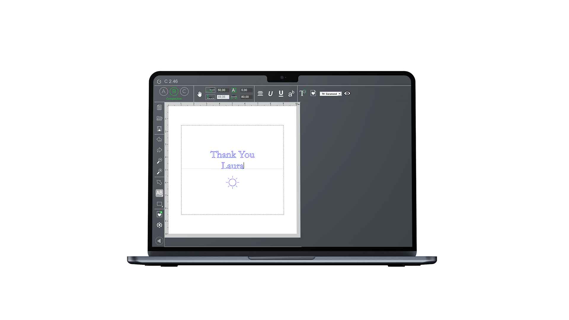ABC es el software ideal para trabajos sencillos de personalización y pequeña señalización. Compatible tanto con máquinas mecánicas como láser, permite realizar grabados en solo tres pasos desde tu ordenador o tablet. Su enfoque intuitivo facilita que incluso principiantes en el grabado puedan crear proyectos personalizados con rapidez y precisión.
