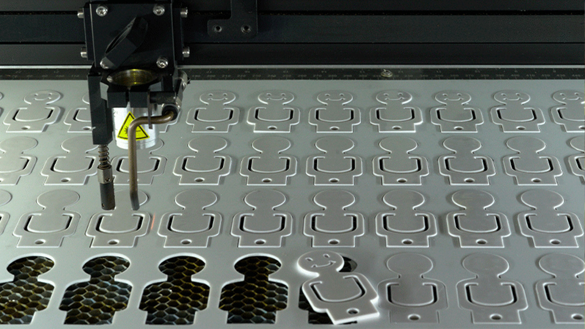 Es ideal para crear plantillas que facilitan el posicionamiento de piezas para su posterior grabado, ya sea con máquina láser o mecánica, lo que maximiza la eficiencia en la producción.