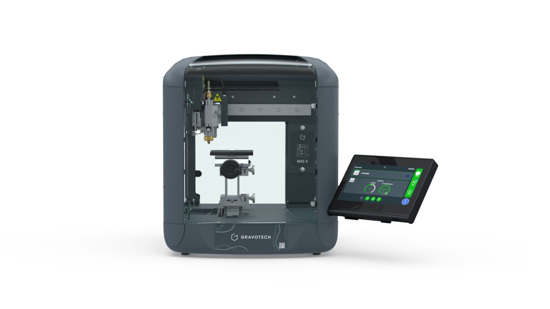 La M20 X de Gravotech es una máquina compacta y versátil para grabado y corte, ideal para personalización, joyería y pequeña señalización, con pantalla táctil, Wi-Fi y manejo intuitivo.