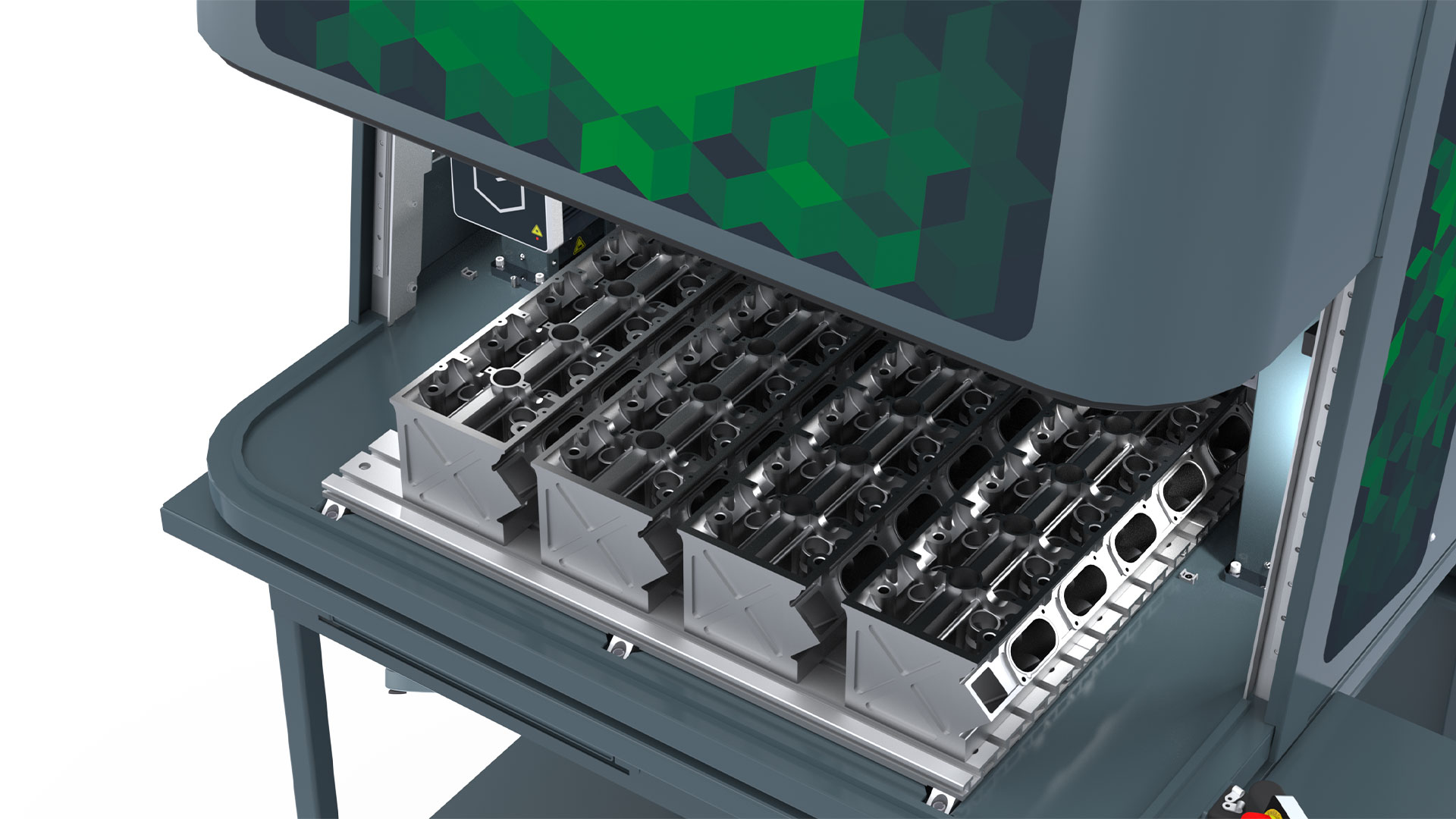 Con una superficie de marcaje de hasta 875×300 mm, el LW3 puede alojar piezas de hasta 628 mm de altura y un peso máximo de 50 kg, lo que lo convierte en una herramienta perfecta para el marcado de piezas individuales o para el marcado matricial de lotes. Además, permite el marcado de grandes piezas en múltiples posiciones y niveles, y se puede equipar con un módulo 3D para marcar superficies inclinadas.